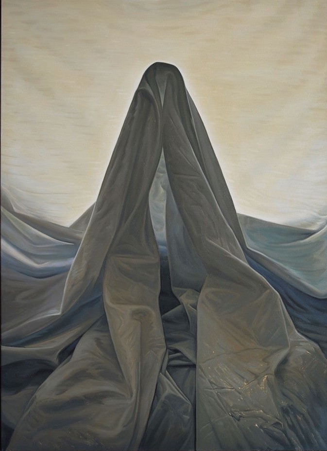 Niklas Asker, The Shroud, 2023, oil on canvas, 45.28h x 33.07w in (115h x 84w cm)
